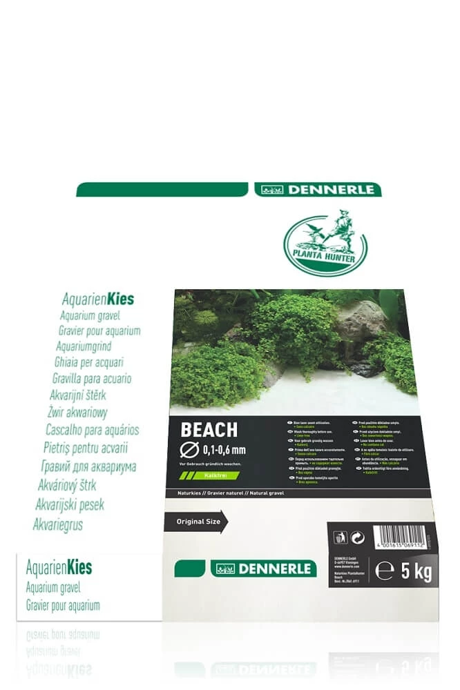 La ghiaia DENNERLE Plantahunter Beach è un fondo per acquario puramente naturale composto da sabbia bianca finissima.