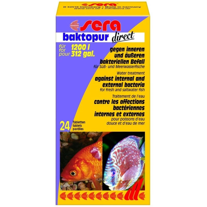 Sera Backtopur Direct Condizionatore d’acqua efficace contro le infezioni batteriche con le sue 24 compresse può trattare fino a 1200 litri di acqua.