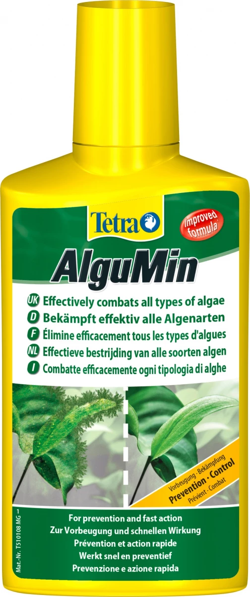 Tetra AlguMin é un agente di lotta biologica contro le alghe. Ha un’azione a lungo termine insieme preventiva e curatva. Si raccomanda di utilizzarlo alle prime apparizioni di alghe. Bloccherà lo sviluppo delle alghe rispettando i pesci e le piante.Â