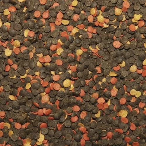 La ricetta varia assicura un’eccellente condizione e dei bei colori del pesce. Le dimensioni e la forma delle patatine, adattate all’apertura della bocca del pesce, incoraggiano un’alimentazione attiva e una masticazione adeguata. Le fibre e l’ortica regolano la funzione digestiva. I piselli verdi e la spirulina, tra gli altri, sono una fonte di proteine vegetali facilmente assimilabili. L’alga Kelp (Ascophyllum nodosum), ricca di sali minerali naturali (tra cui lo iodio) e di vitamine, aumenta la resistenza dell’organismo. Il germe di grano fornisce preziosi acidi grassi insaturi. L’aggiunta di L-carnitina supporta il metabolismo dei grassi.