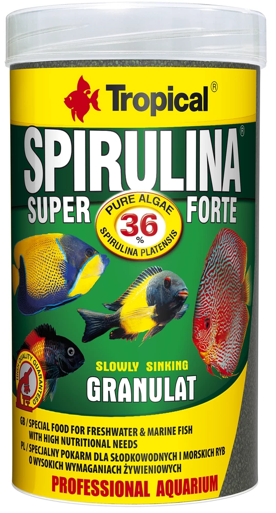 Destinato ai ciclidi africani che si nutrono di alghe e ad altri pesci, anche marini, che richiedono una proporzione considerevole di componenti vegetali nella loro dieta. La spirulina stimola il sistema immunitario e ha un effetto positivo sui processi digestivi. È una fonte di acidi grassi insaturi, proteine facilmente assimilabili e ricche di aminoacidi essenziali, vitamine e oligoelementi che assicurano una condizione eccellente, una crescita intensiva e vitalità. Se usati regolarmente, i carotenoidi contenuti nella spirulina (tra cui il beta-carotene) rendono i colori del pesce più intensi e brillanti.